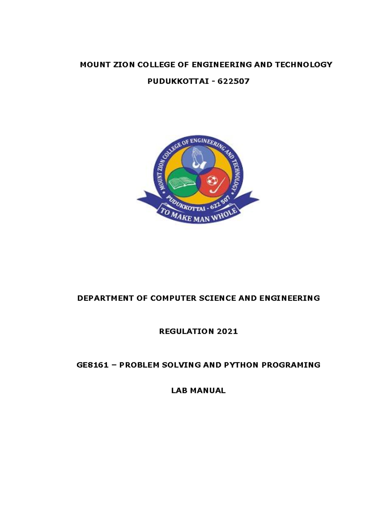 GE3171 Problem Solving and Python Programming Lab Manual - Studocu