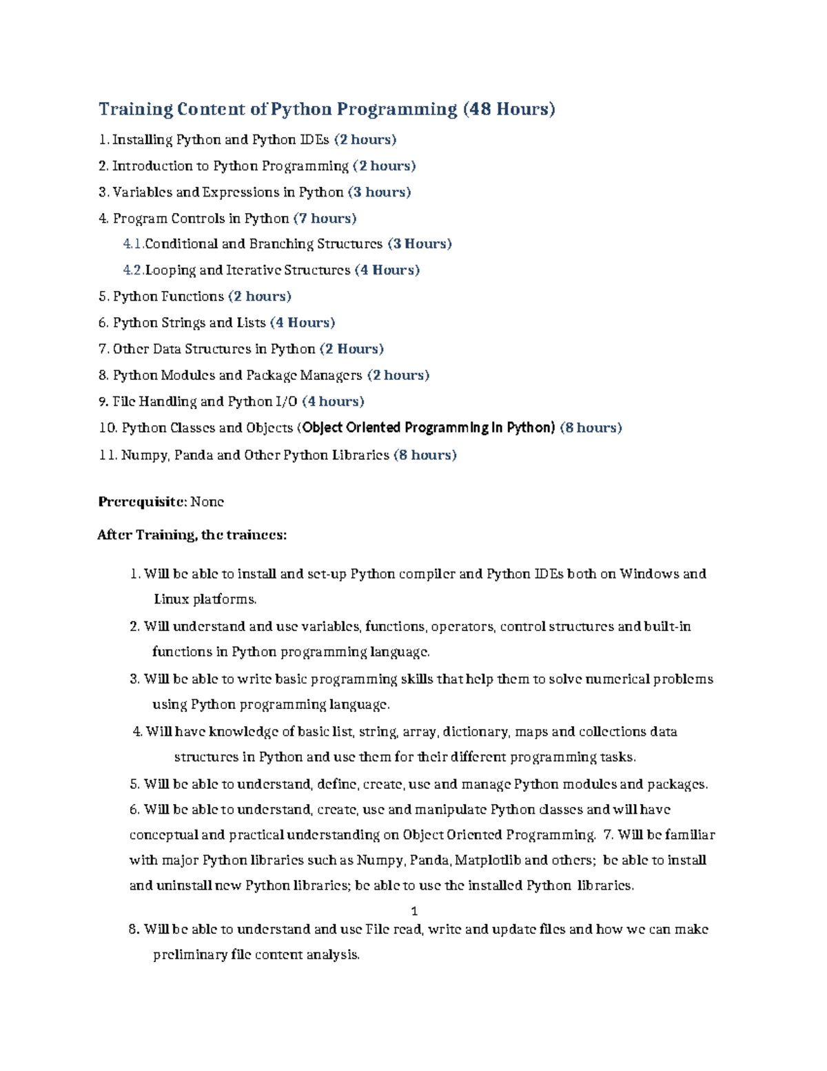 Training Syllabus for Python Programming (48 Hours) - 3rd Round - Studocu