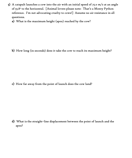Solved 4. Cow-apult.3 In the movie Monty Python and the Holy | Chegg.com