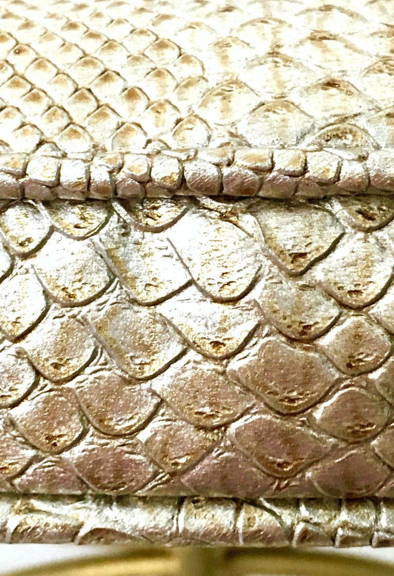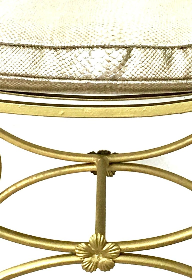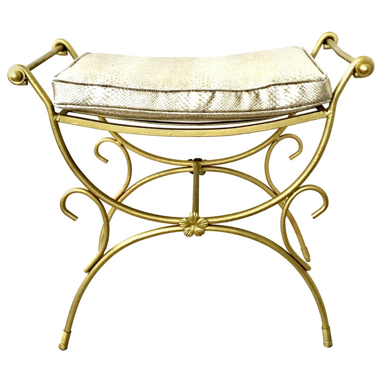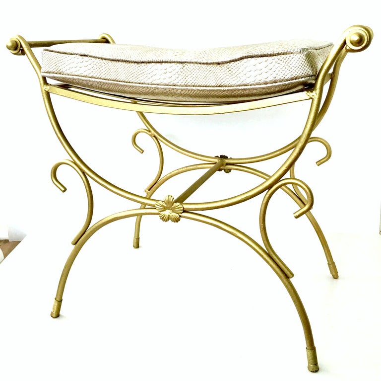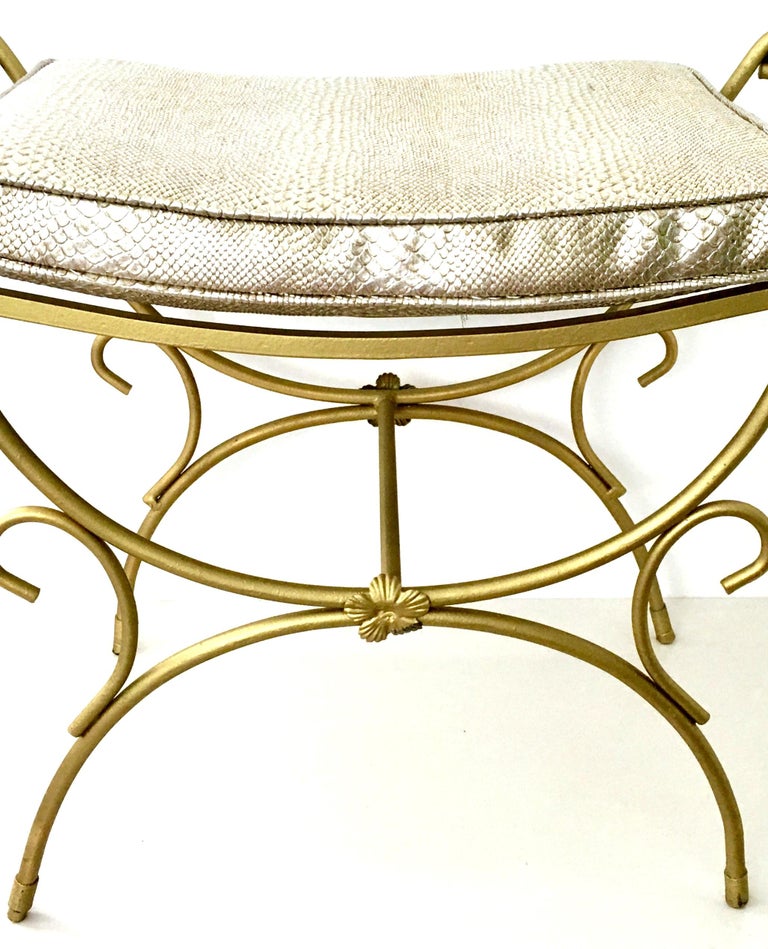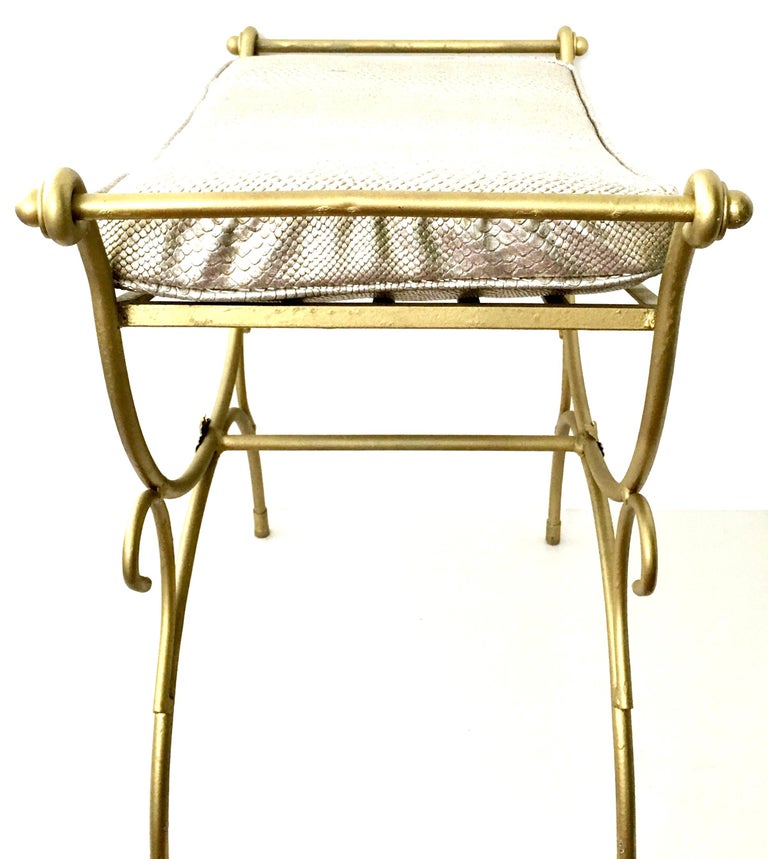 Mid-Century Hollywood Regency Gold Iron and Faux Python Cushion Bench ...