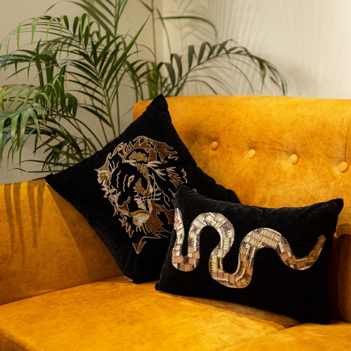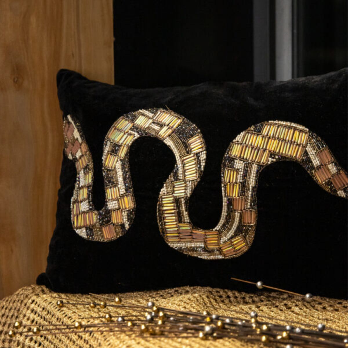 Buy Alcove Black and Gold Python Cushion Cover Online