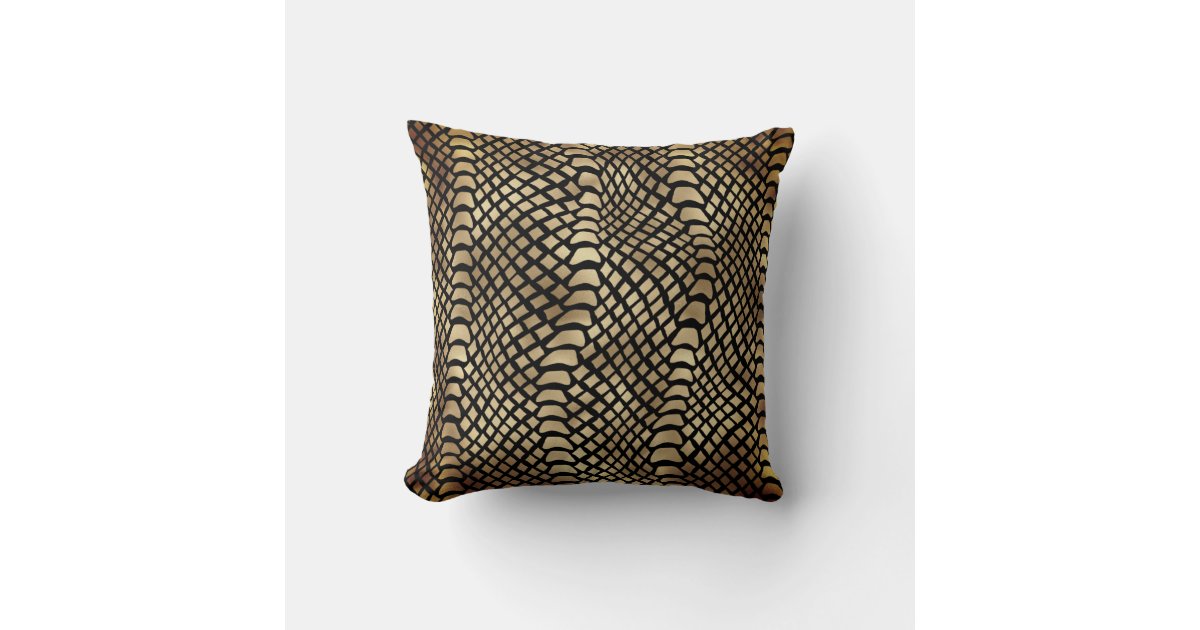 Safari African Black Gold Python Animal Skin Sepia Cushion | Zazzle