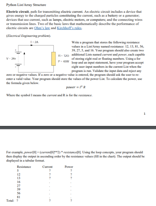 Solved Python List/Array Structure Electric circuit, path | Chegg.com