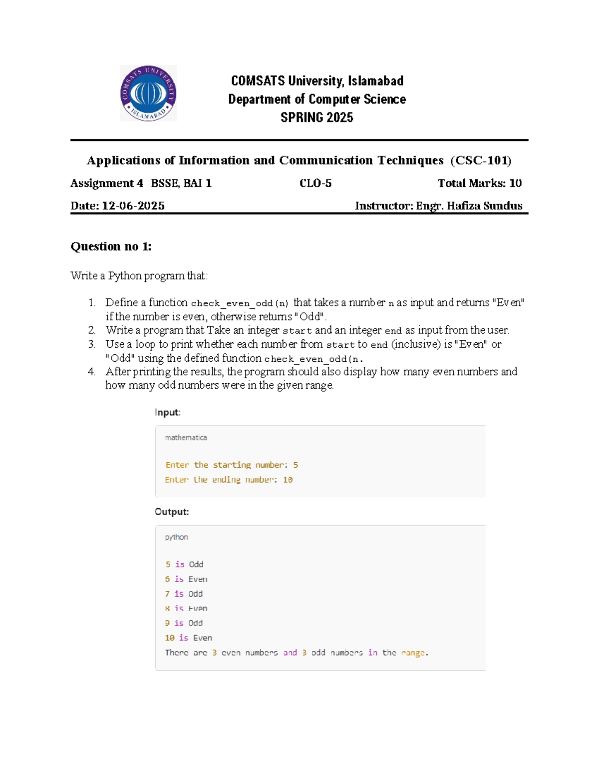 A4 ICT SP25 - CSC 101 Python Even/Odd Checker Assignment - Studocu