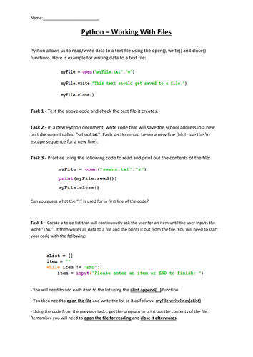 Python File Handling - Writing To Text Files Lesson | Teaching Resources