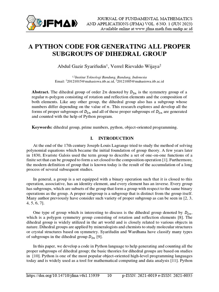 A Python Code For Generating All Proper Subgroups of Dihedral Group ...
