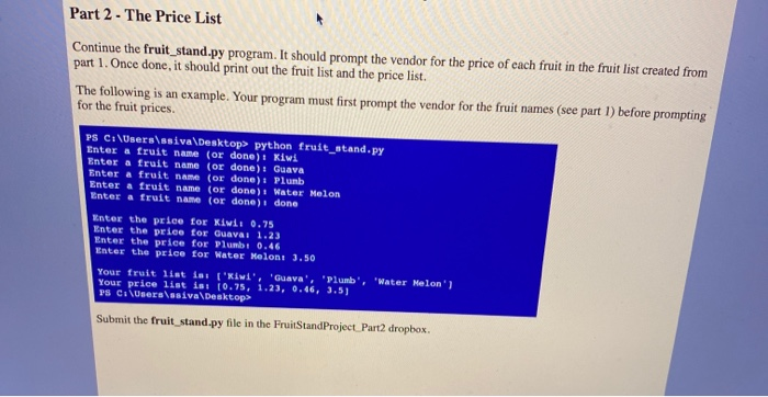 Solved Part 2 - The Price List Continue the fruit_stand.py | Chegg.com
