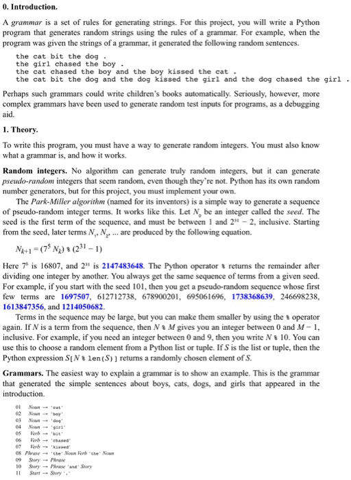 Solved 0. Introduction. A grammar is a set of rules for | Chegg.com
