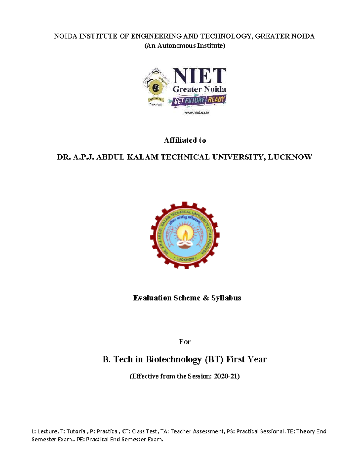 B. Tech First Year Evaluation Scheme & Syllabus Overview - Studocu