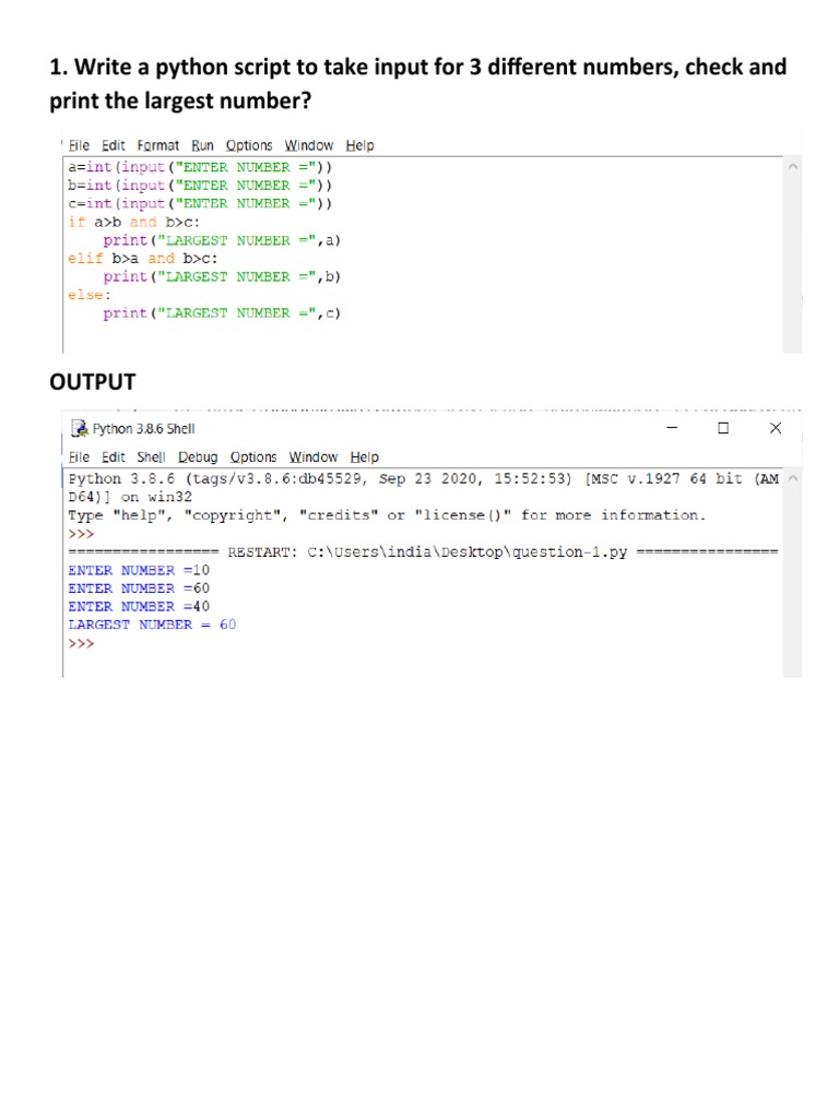 Write A Python Script To Take Input For 3 Different Numbers, Check and ...