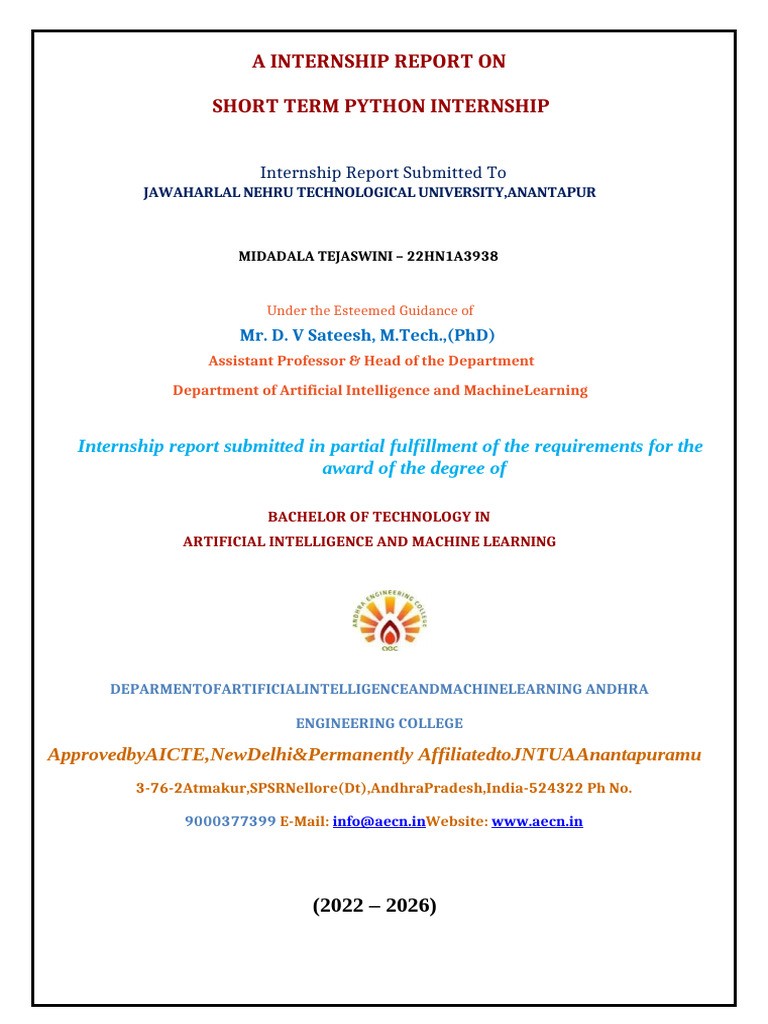 Python project 1 - Internship Report on PYTHON INT411: Intra ...