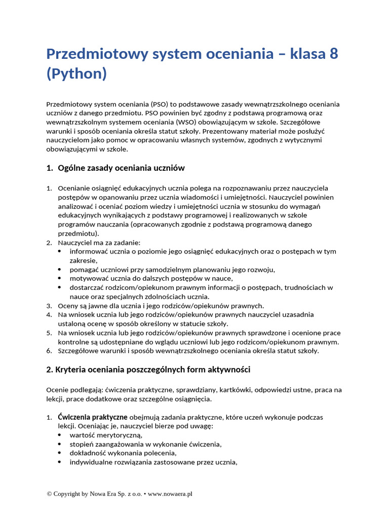 Lubie To Przedmiotowy System Oceniania Do Informatyki Dla Klasy 8 ...