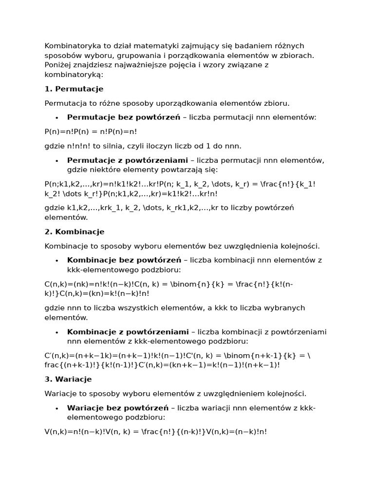 Matematyka Kombinatoryka: Wzory i Reguły M2 - Studocu