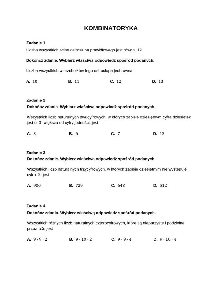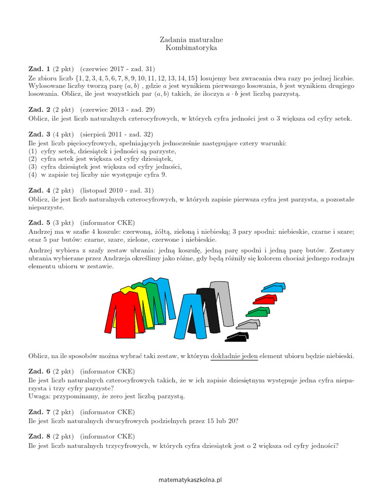 kombinatoryka zadania.info - Szkoła Maturzystów