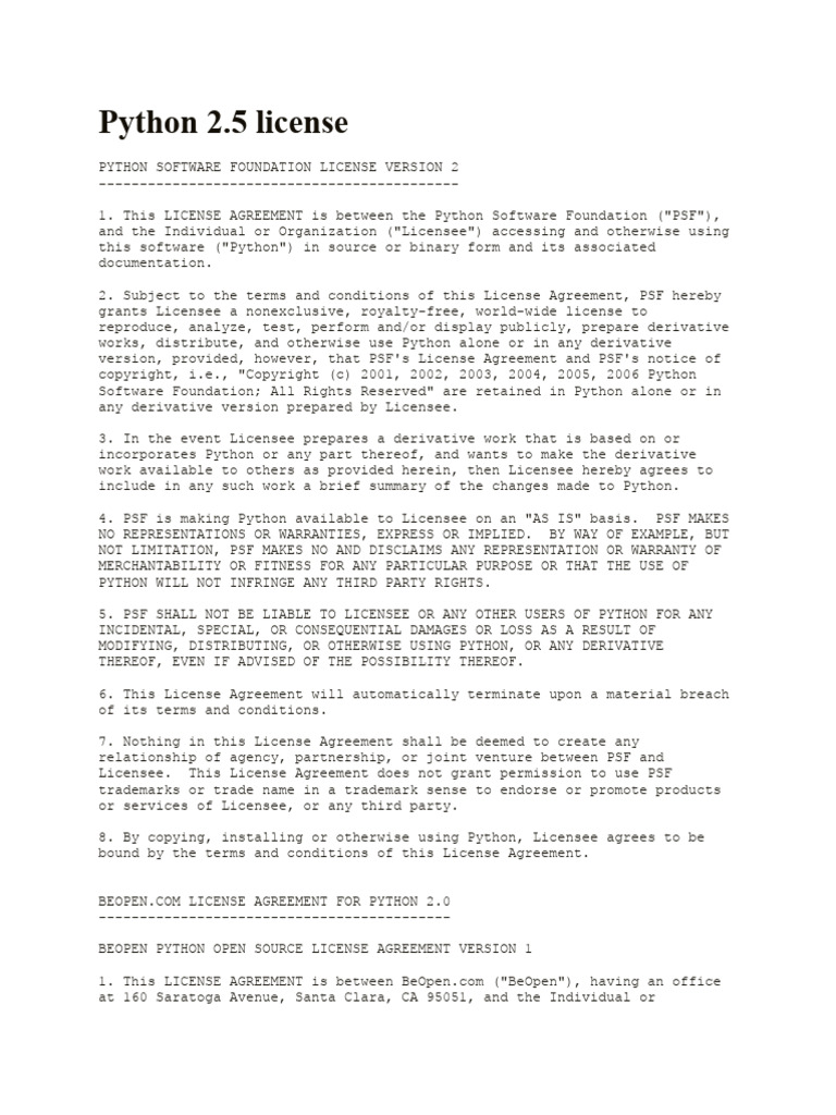 Python License Agreements Overview | PDF | License | Copyright