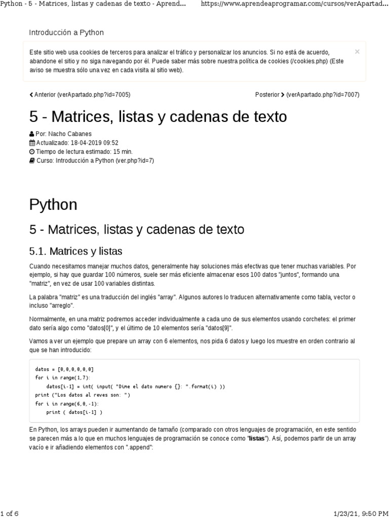 Listas y Arreglos en Python | PDF | Python (lenguaje de programación ...