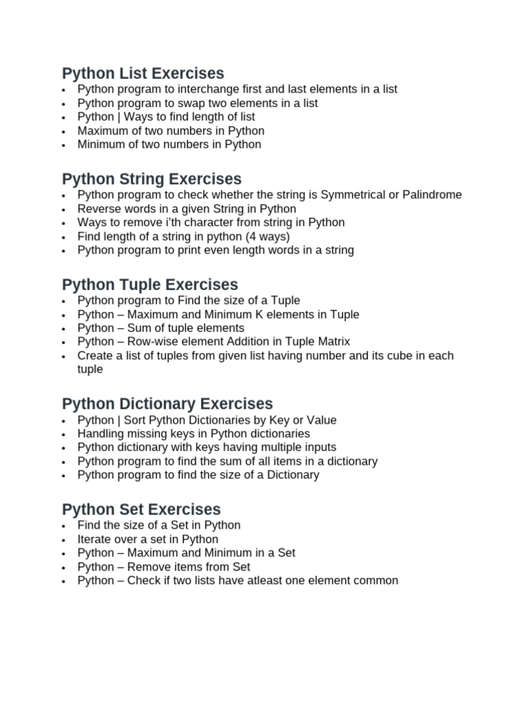 100 Exercises for Practicing Python: A set of exercises with different ...