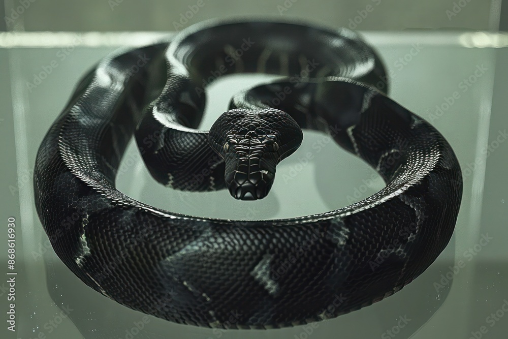 A realistic silhouette logo of a python, coiled up in black against a ...