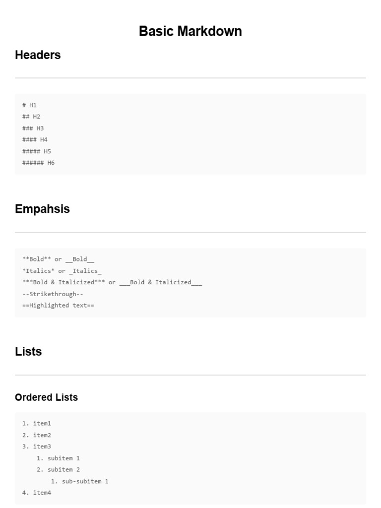 Markdown Cheat Sheet: Links, Images, Lists & More | Course Hero