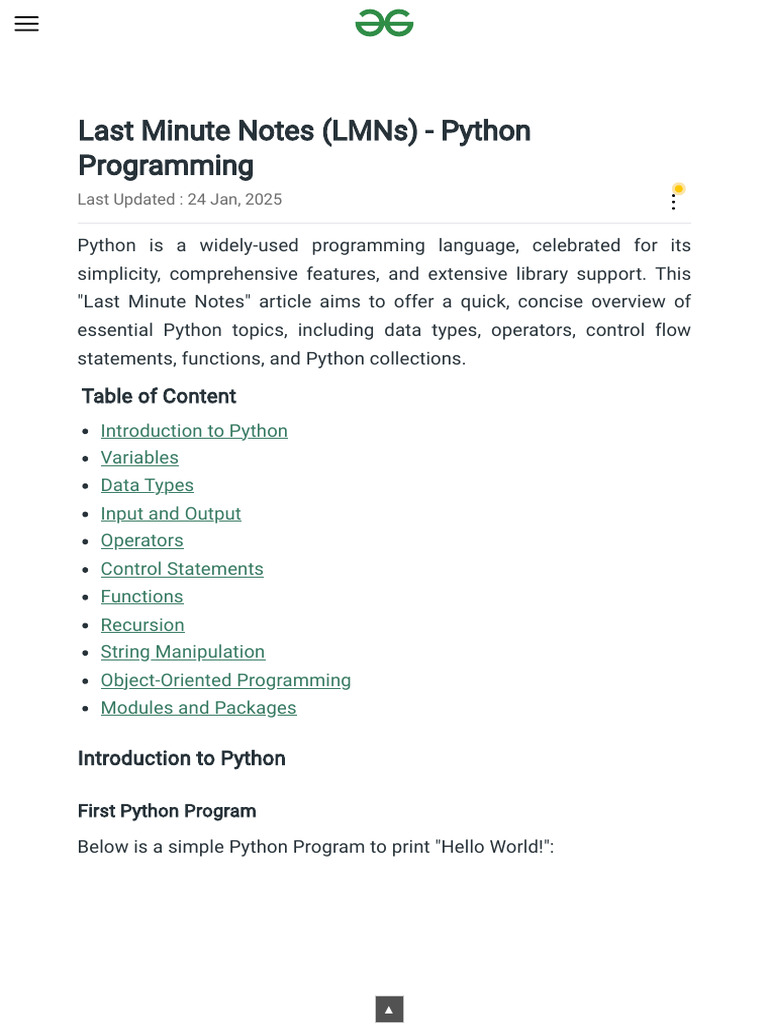 Last Minute Notes LMNs Python Programming GeeksforGeeks MHTML | PDF ...