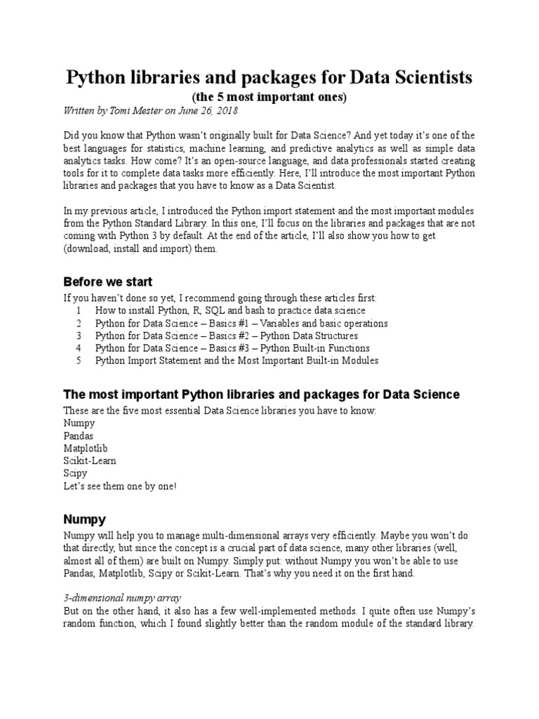 Python Libraries and Packages For Data Science | PDF | Machine Learning ...