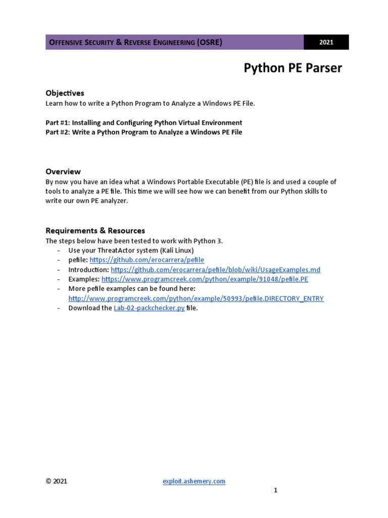 Python PE Parser: O S & R E (OSRE) | PDF | Python (Programming Language ...