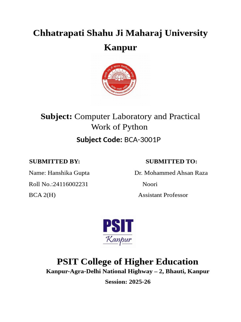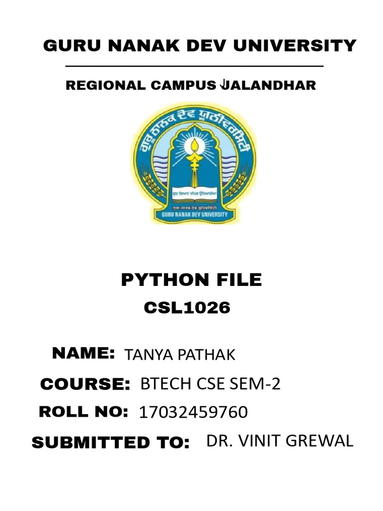 Front Page of Python Lab File | PDF