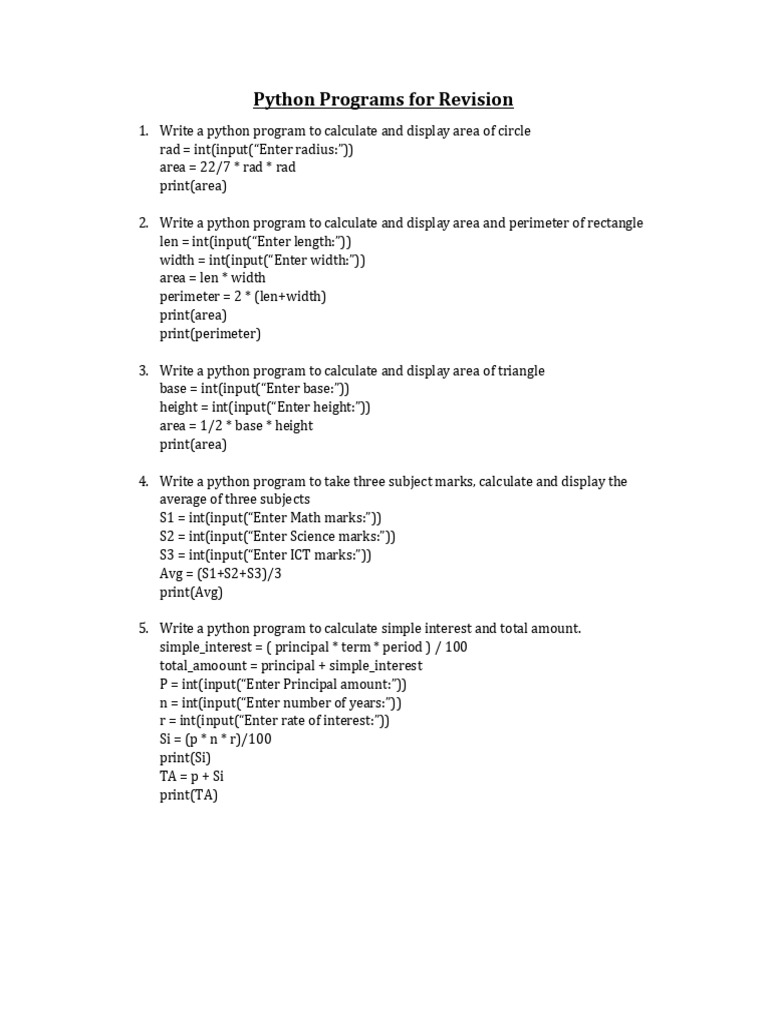 Essential Python Programs for Grade 6 IT Projects | Course Hero