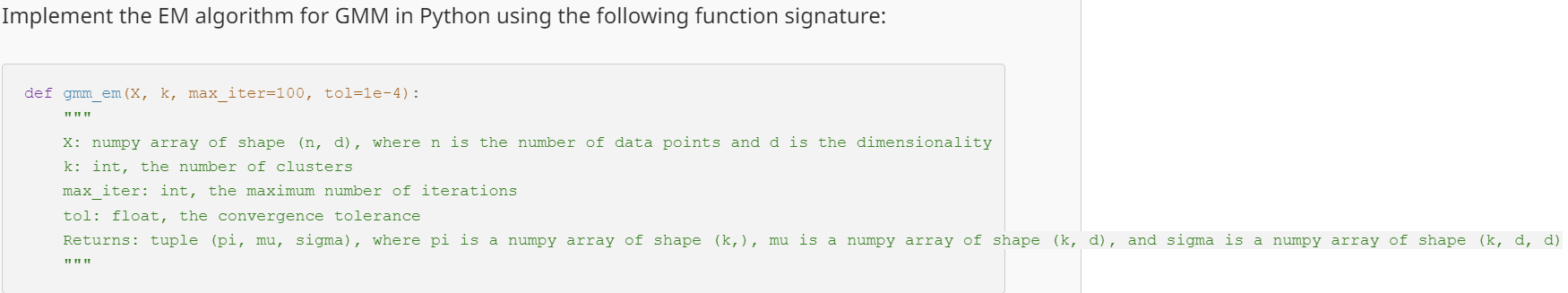 Solved Implement the EM algorithm for GMM in Python using | Chegg.com