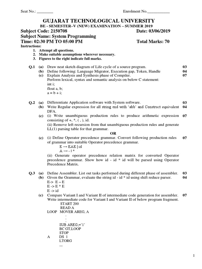 System Programming Question Paper GTU | PDF | Parsing | Computer Science