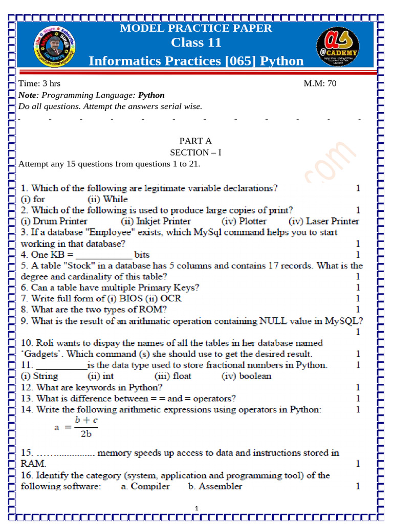 IP Class 11 (Set- A, B) | PDF