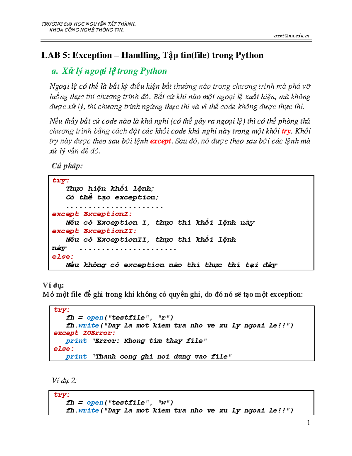 LAB 5: Xử lý Ngoại lệ và Tập tin trong Python - Khoa CNTT - Studocu