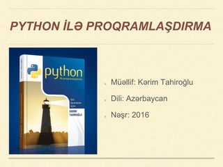 Python ilə Proqramlaşdırma Kitabı - TƏQDİMAT | PPTX