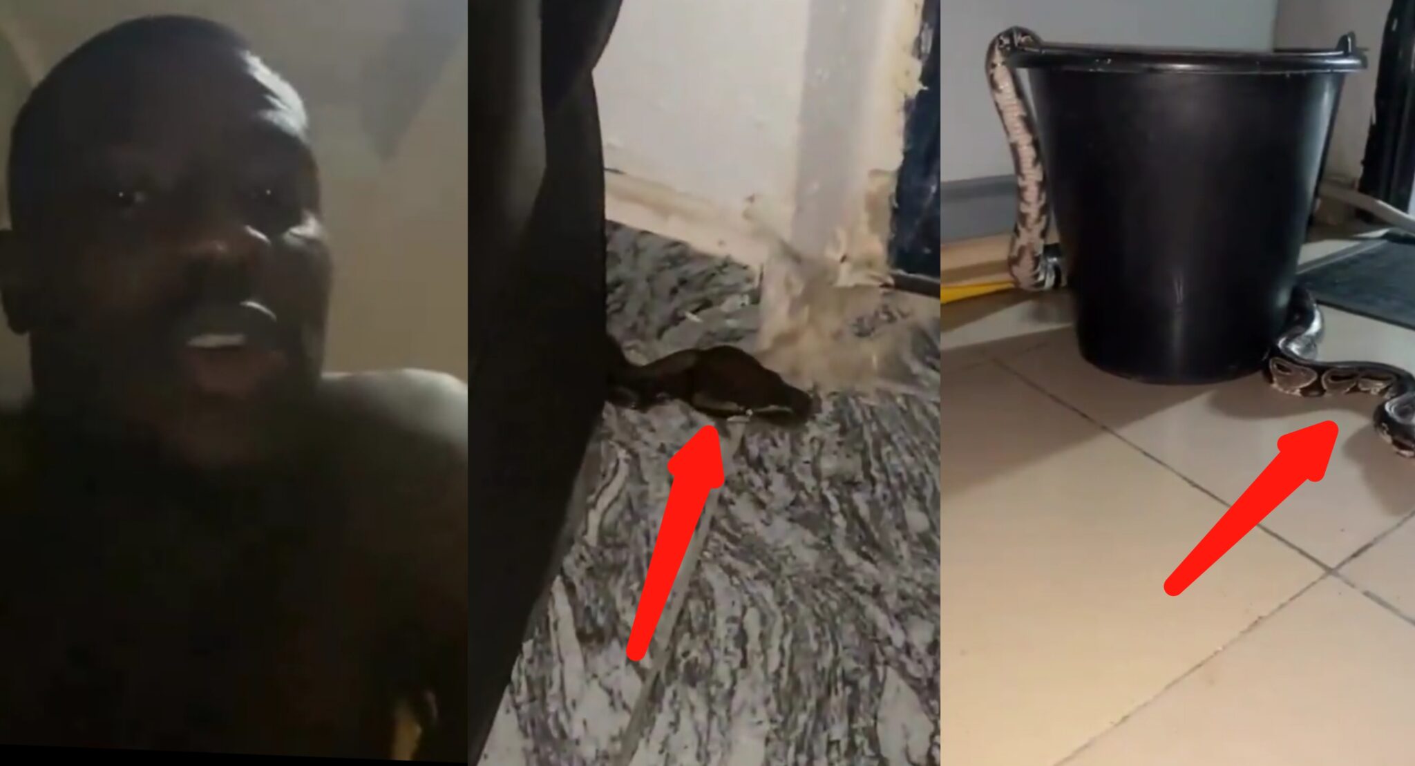 Scary video shows two pythons fighting after falling from the ceiling ...