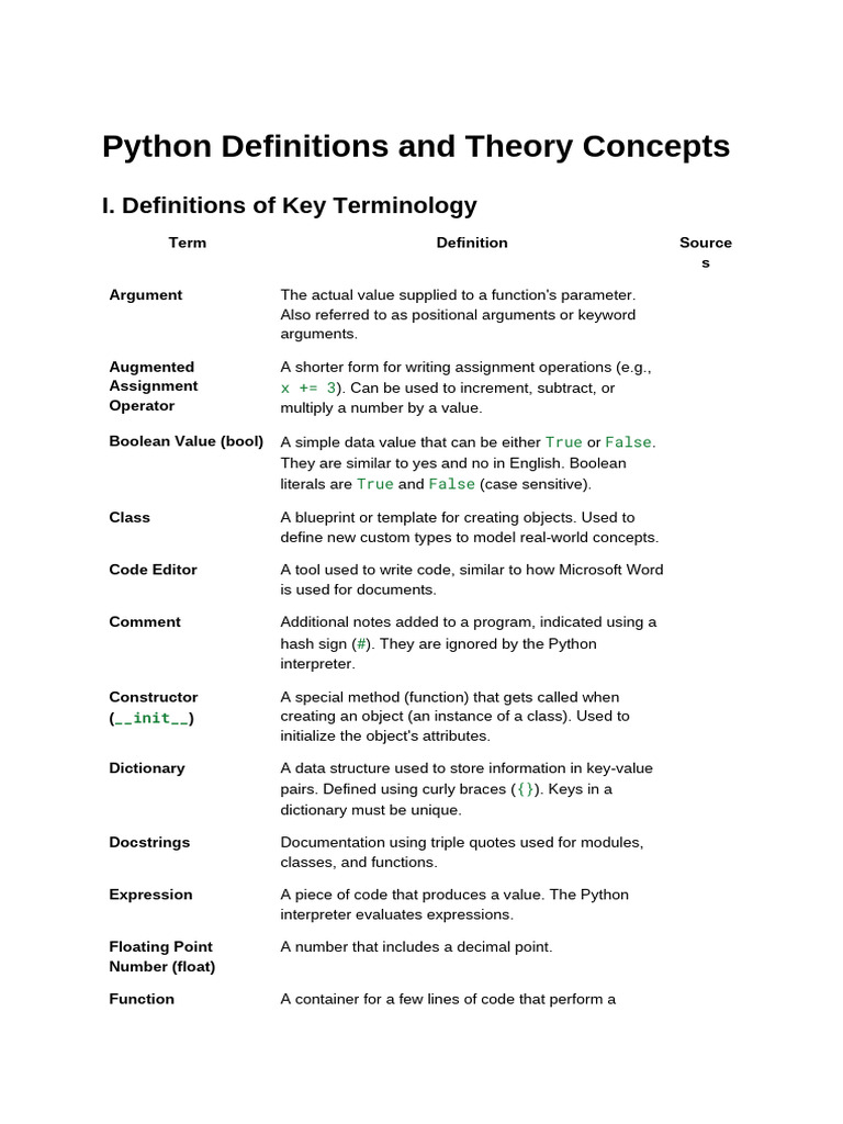 Python Basics Guide: Definitions and Key Concepts - Studocu