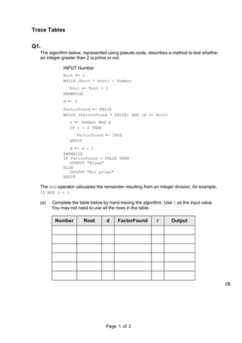 Trace Table Example Question at Krystal Russell blog
