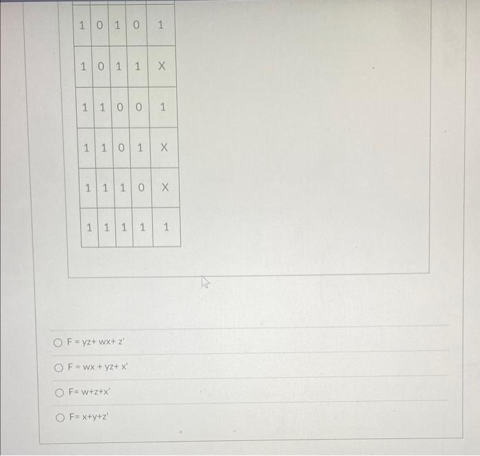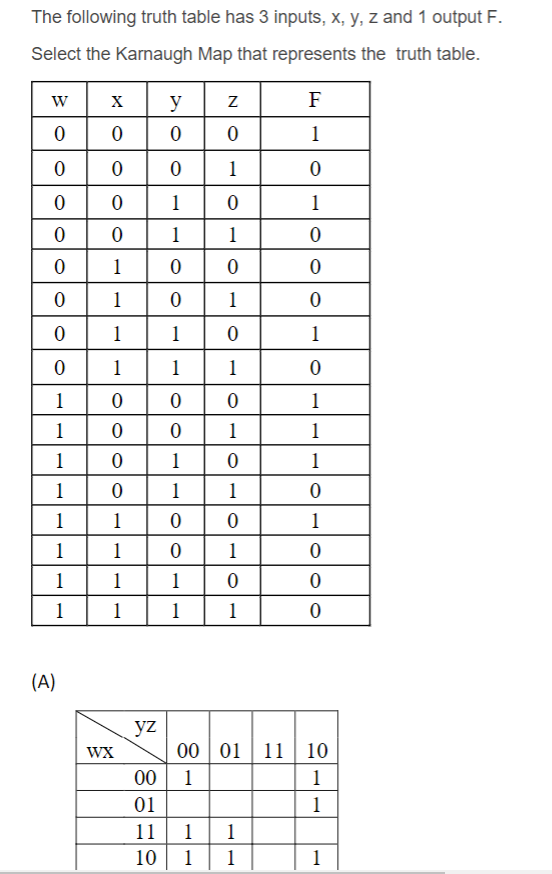 Solved The following truth table has 4 inputs, w,x,y,z and 1 | Chegg.com