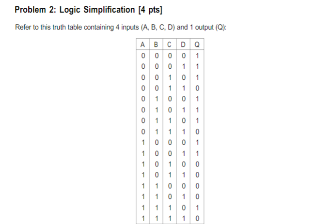 Solved Q5 (16pts):Here is a 4-input truth table with input | Chegg.com