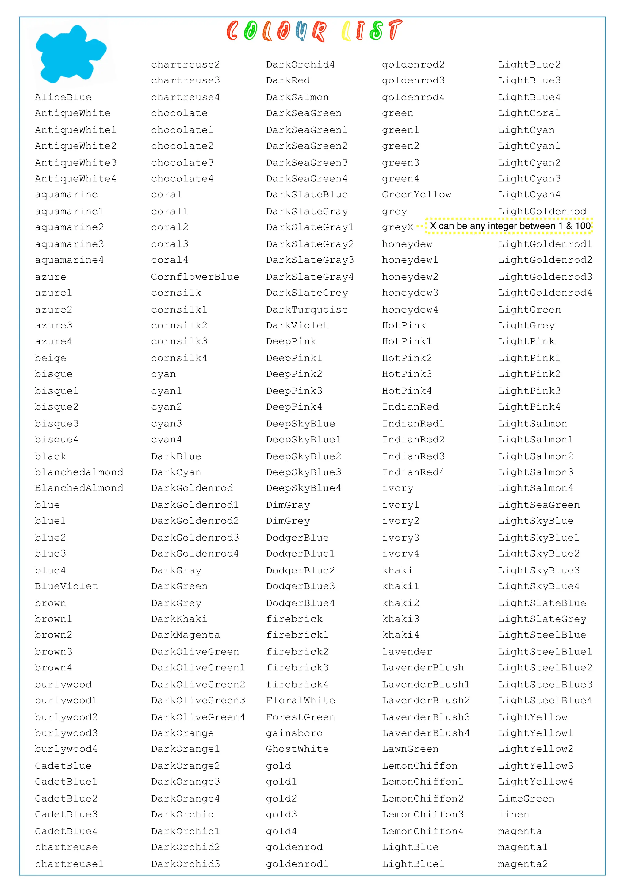 Python Turtle Color Codes - Free Printable Templates: