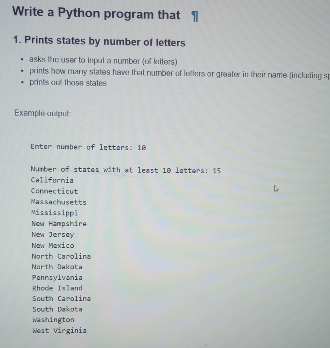 Solved Write a Python program that ]] 1. Prints states by | Chegg.com