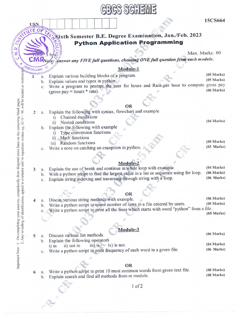 VTU Question Paper of 15CS664 Python Application Programming Jan-Feb ...
