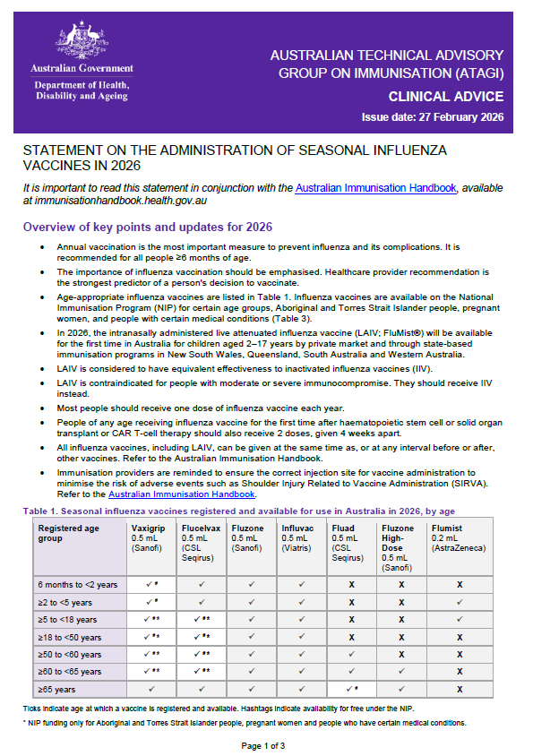 ATAGI Statement on the administration of seasonal influenza vaccines in ...