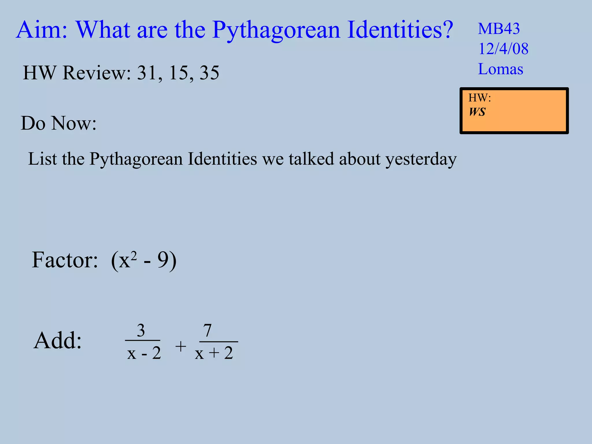 Pythag Identities2 | PPT