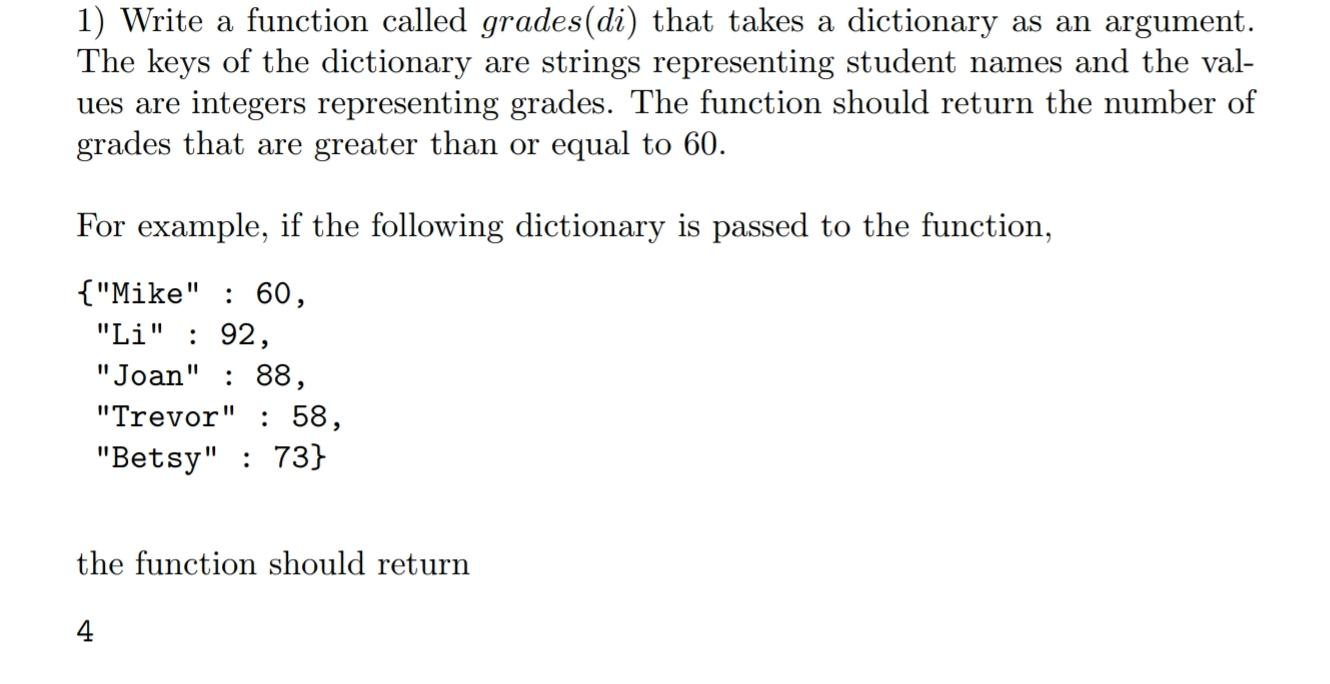 Solved 1) Write a function called grades (di) that takes a | Chegg.com