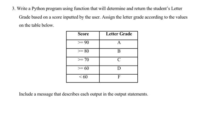 Solved 2. Write a Python program to determine the grade of a | Chegg.com