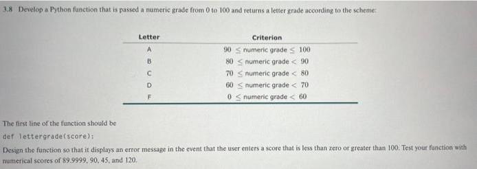 In Python, create the functions get_letter_grade_v1 | Chegg.com