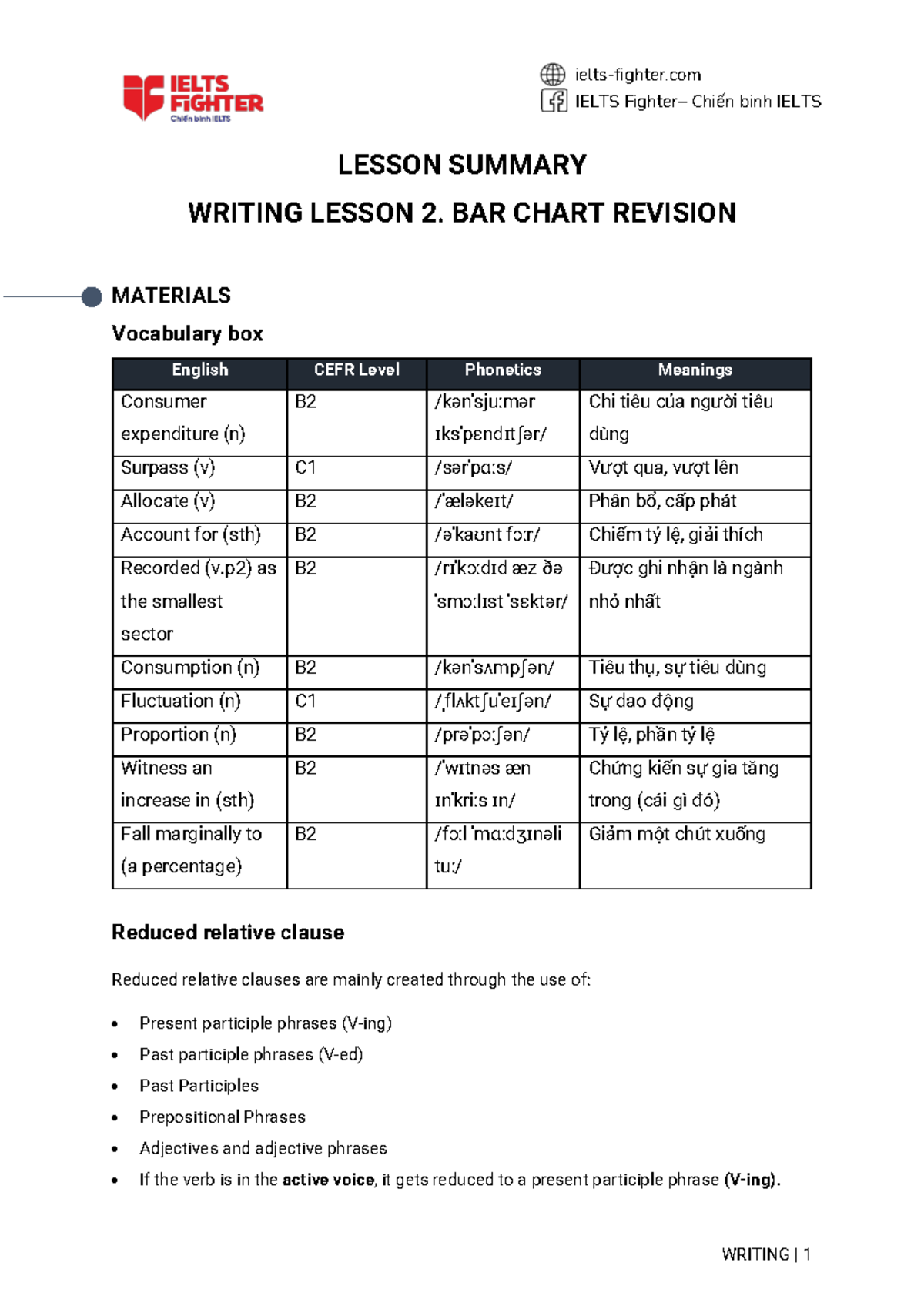IELTS Chiến binh: Writing Lesson 2 - Bar Chart Revision Notes - Studocu