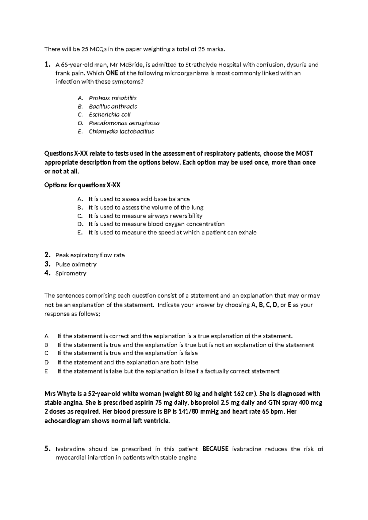 Exam Q examples - practice - There will be 25 MCQs in the paper ...