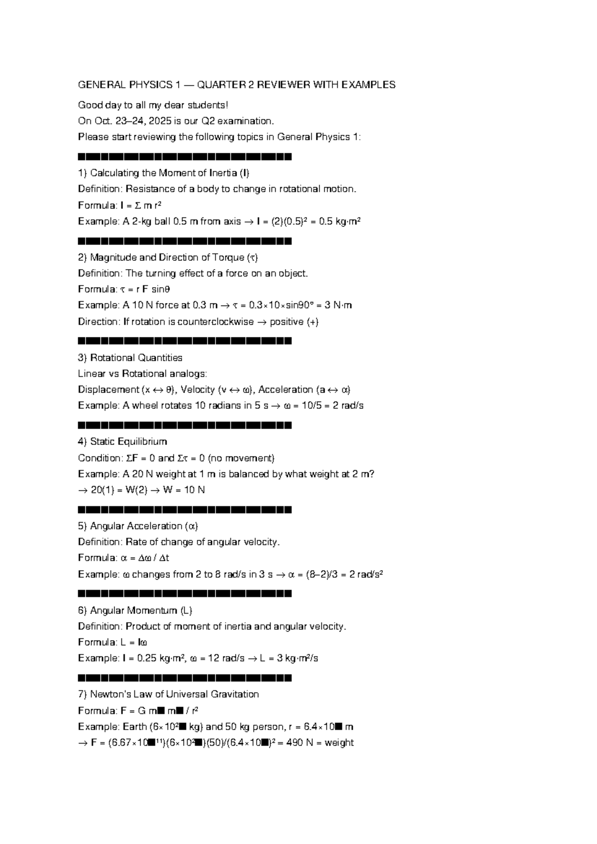 GENERAL PHYSICS 1 Q2 REVIEWER: KEY CONCEPTS & EXAMPLES - Studocu