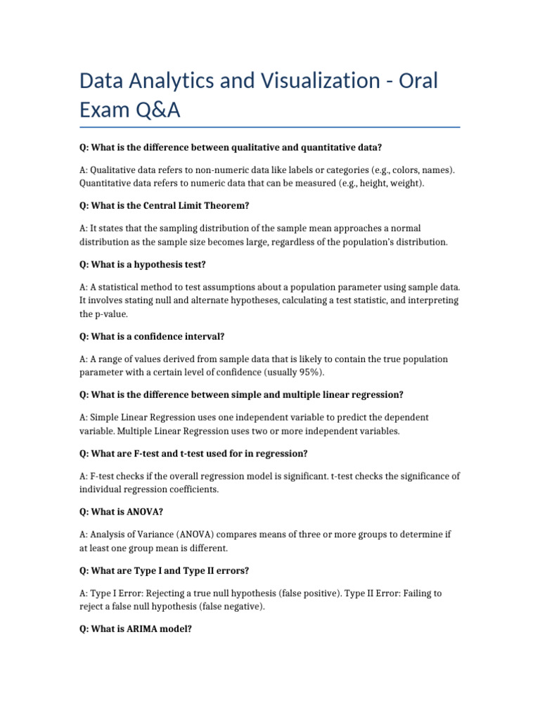 Data Analytics Visualization Oral QA | PDF | Regression Analysis | F Test
